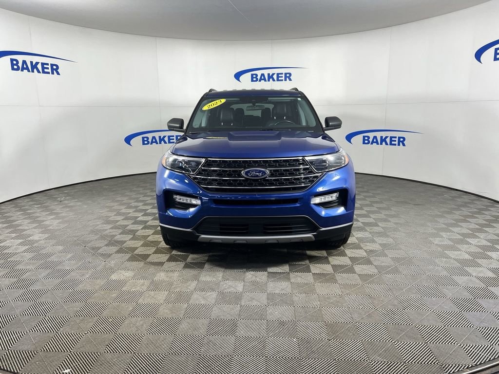 Atlas Blue Metallic 2023 Ford Explorer XLT 4WD 10-Speed Automatic 2.3L EcoBoost I-4 Non-Smoker, ONE Owner, no accidents, CARFAX CERTIFIED,, LOCAL trade in!, CAR BRAVO CERTIFIED - 12 month/12,000 mile Limited Bumper to Bumper Warranty!, Explorer XLT, 4D Sport Utility, 2.3L EcoBoost I-4, 4WD, Atlas Blue Metallic, Ebony Leatherette, Acoustic-Laminated Front Side Windows, Equipment Group 202A, Heated ActiveX Captain's Chairs, Heated Steering Wheel, LED Fog Lamps, Power Liftgate, Remote Start System, SecuriCode Keyless Entry Keypad, Wheels: 18 5-Spoke Silver-Painted Aluminum.