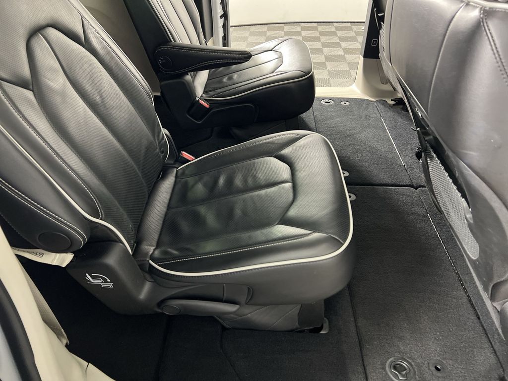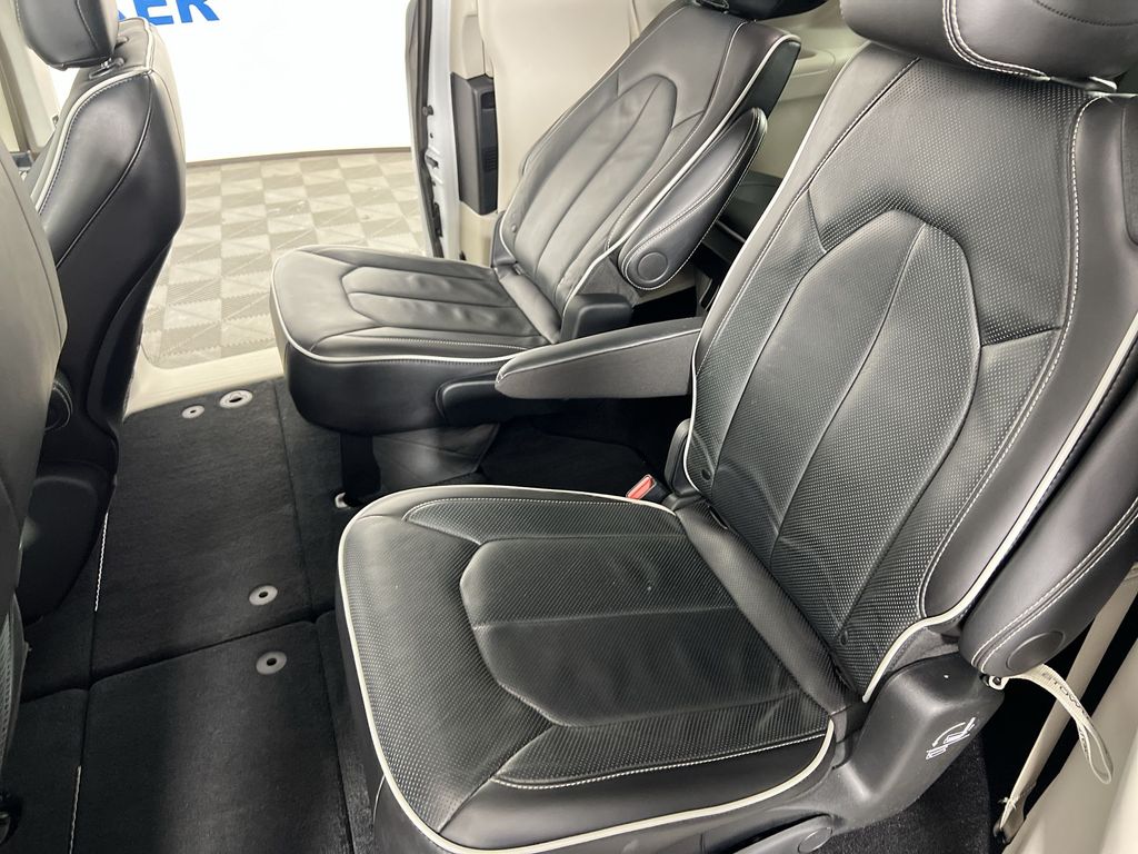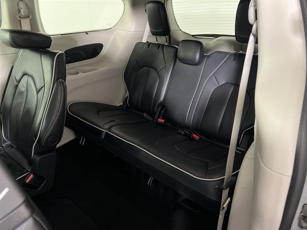 Step inside the Pacifica Limited and be captivated by the premium Nappa leather-trimmed interior, which offers unparalleled comfort and style. The spacious cabin provides ample room for up to 8 passengers, while the versatile split-folding rear seats and power liftgate make loading and unloading a breeze.