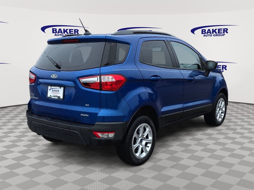 4WDEcoSport SE, 4D Sport Utility, 4WD, Lightning Blue, Ebony Black Cloth, AppLink/Apple CarPlay and Android Auto, Automatic temperature control, Delay-off headlights, Electronic Stability Control, Equipment Group 200A, Exterior Parking Camera Rear, Front Bucket Seats, Fully automatic headlights, Heated front seats, Power moonroof, Radio: AM/FM Stereo w/MP3 Capable, Rear Parking Sensors, Remote keyless entry, SiriusXM Radio, Steering wheel mounted audio controls, SYNC 3 Communications & Entertainment System.Recent Arrival! 23/29 City/Highway MPG