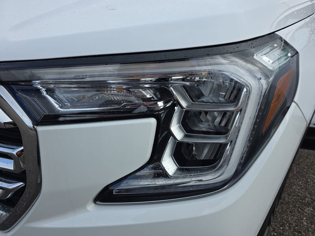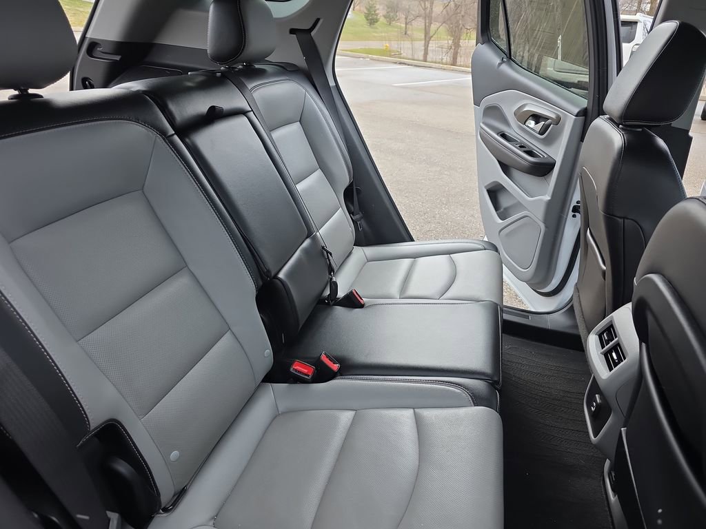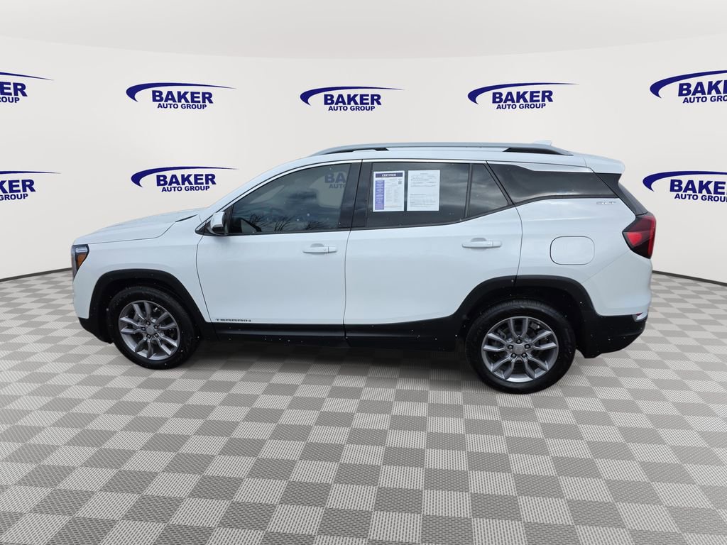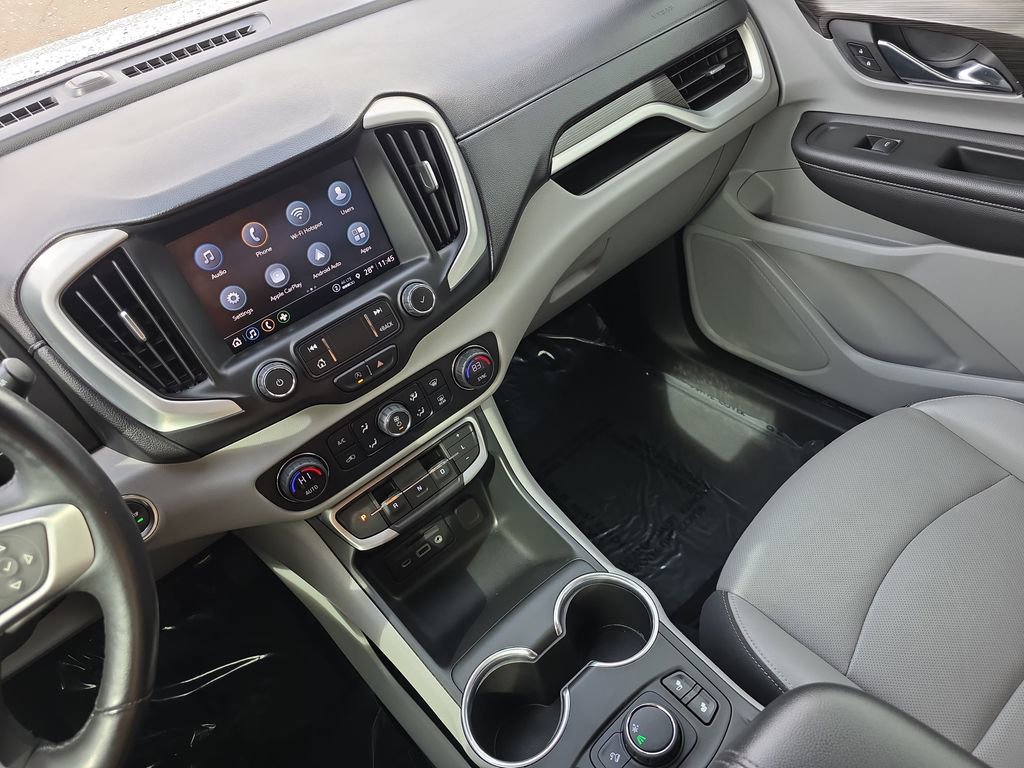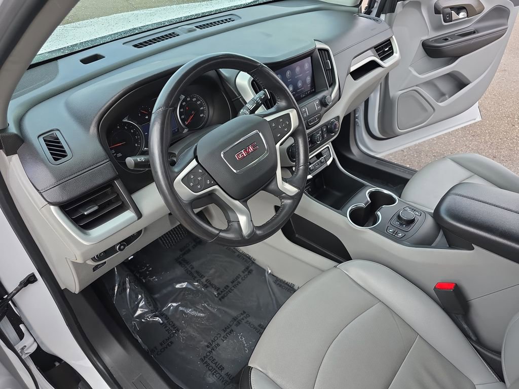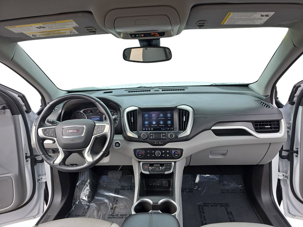 Stepping inside, you'll be greeted by a spacious and well-appointed cabin, featuring perforated leather-appointed seating, a heated steering wheel, and an 8-inch infotainment display. The split-folding rear seat and ample cargo space make this Terrain SLT an ideal companion for your adventures, whether it's a weekend getaway or a daily commute.