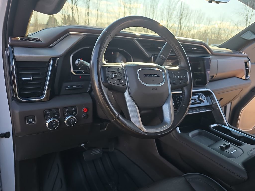 Step inside and experience the unparalleled comfort of the Denali's Forge Perforated Leather-Appointed front seats, with both heating and ventilation. The heated steering wheel and dual-zone automatic climate control ensure you and your passengers stay cozy, no matter the weather.