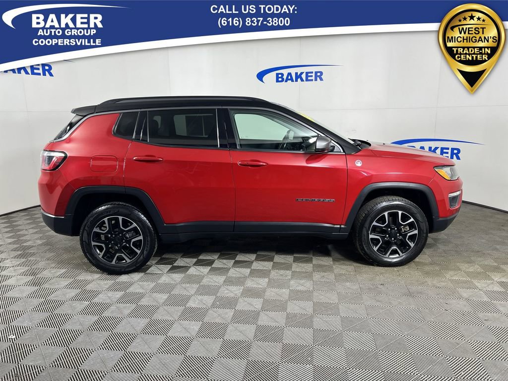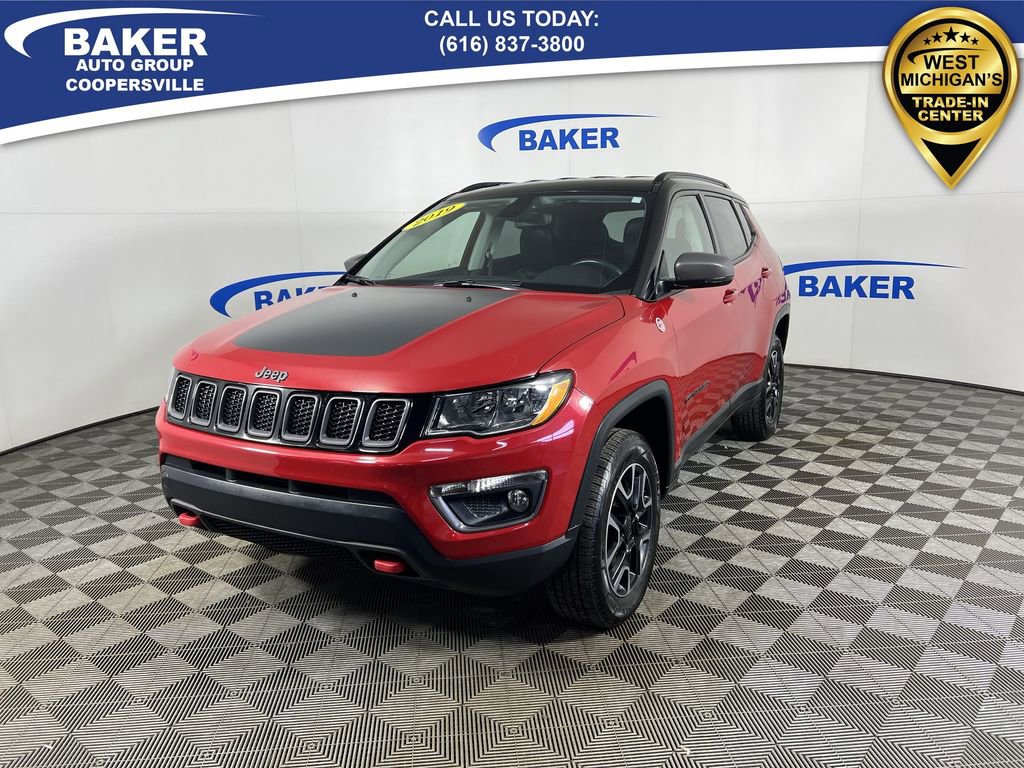 Redline Pearlcoat 2019 Jeep Compass Trailhawk 4WD 9-Speed Automatic 2.4L I4 Non-Smoker, LOCAL trade in!, CAR BRAVO CERTIFIED - 12 month/12,000 mile Limited Bumper to Bumper Warranty!, 2.4L I4, 4WD, Redline Pearlcoat, Ruby Red/Black Cloth, Apple CarPlay/Android Auto, Automatic temperature control, Cold Weather Group, Front dual zone A/C, Heated Front Seats, Heated Steering Wheel, ParkView Rear Back-Up Camera, Radio: Uconnect 4 w/8.4 Display, Remote Start System, Wheels: 17 x 6.5 Painted/Bright Aluminum, Windshield Wiper De-Icer.