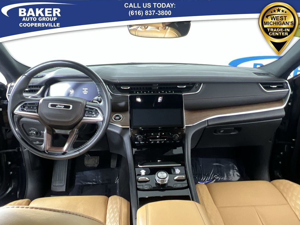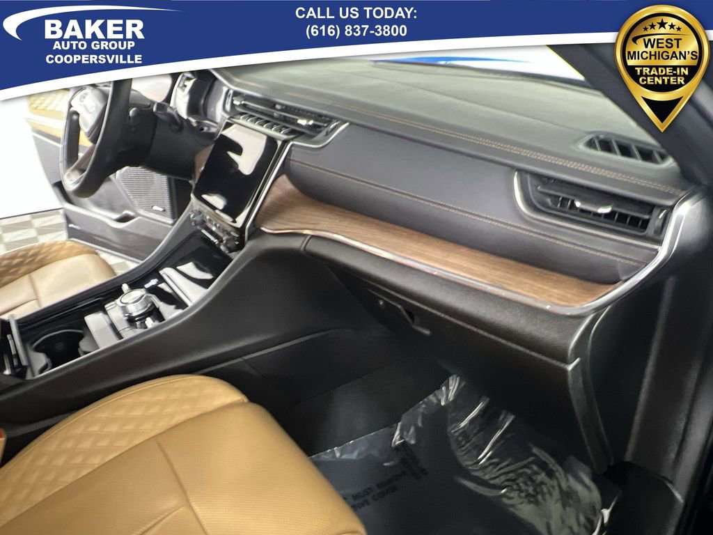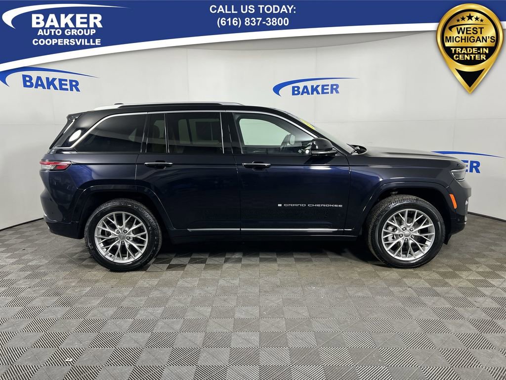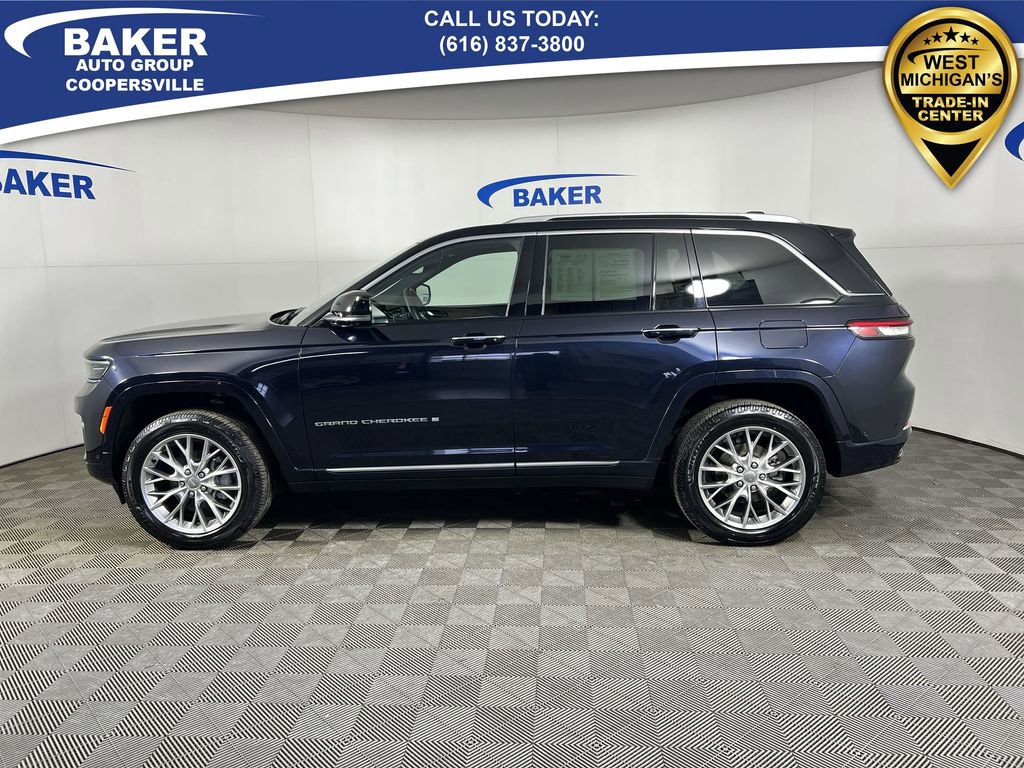 Midnight Sky 2023 Jeep Grand Cherokee Summit 4WD 8-Speed Automatic 3.6L V6 24V VVT Non-Smoker, LOCAL trade in!, CAR BRAVO CERTIFIED - 12 month/12,000 mile Limited Bumper to Bumper Warranty!, Grand Cherokee Summit, 3.6L V6 24V VVT, 8-Speed Automatic, 4WD, Midnight Sky, Tupelo/Black Leather, 2nd-Row Manual Window Shades, Automatic temperature control, Front dual zone A/C, Heated front seats, Heated rear seats, Luxury Tech Group V, Memory seat, Navigation System, Power driver seat, Power Liftgate, Power moonroof, Power passenger seat, Quick Order Package 23S, Radio: Uconnect 5 Nav w/10.1 Display, Rear dual zone A/C, Ventilated front seats, Wheels: 20 x 8.5 Fully Painted Aluminum Silver, Wireless Charging Pad.