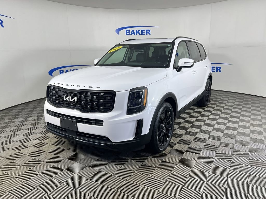 New Price! Glacial White Pearl 2022 Kia Telluride EX AWD 8-Speed Automatic 3.8L V6 DOHC Non-Smoker, ONE Owner, no accidents, CARFAX CERTIFIED,, CAR BRAVO BUDGET CERTIFIED - 30 day/1,000 mile Limited Powertrain Warranty!, 4D Sport Utility, 3.8L V6 DOHC, AWD, Glacial White Pearl, Black Leather, 20 x 7.5 Machined Alloy Wheels, 2nd Row Captain Chairs, Black Finish Radiator Grille, EX Premium Package, Exclusive Black Headlight Bezels, Front & Rear Gloss Black Finish Bumper Skid Plates, Gloss Black Finish Exterior Emblems, Gloss Black Finish Front & Rear Door Garnish, Gloss Black Finish Roof Rails, LED Headlamps, Navigation System, Nightfall Edition Package, Power Liftgate, Power moonroof, Satin Chrome Roof Rails, Wheels: 20 x 7.5 Exclusive Black Alloy.