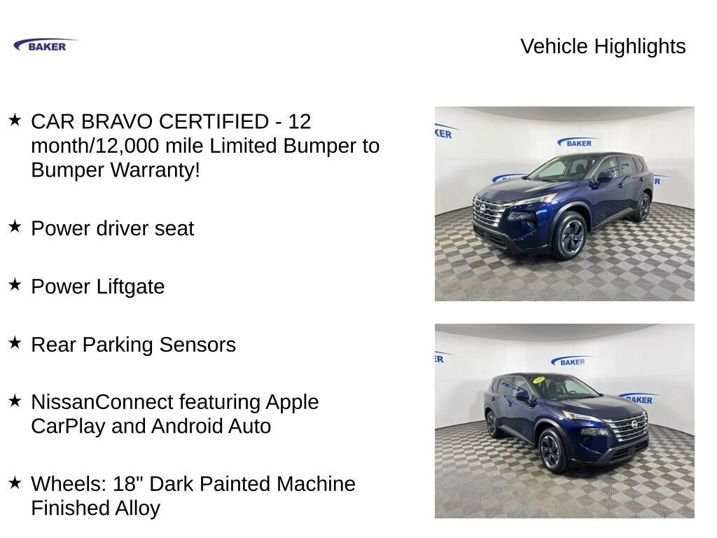 New Price! Deep Ocean Blue Pearl 2024 Nissan Rogue SV AWD CVT with Xtronic 1.5L DOHC CAR BRAVO CERTIFIED - 12 month/12,000 mile Limited Bumper to Bumper Warranty!, Rogue SV, 1.5L DOHC, AWD, Charcoal Cloth, NissanConnect featuring Apple CarPlay and Android Auto, Power driver seat, Power Liftgate, Rear Parking Sensors, Wheels: 18 Dark Painted Machine Finished Alloy.CALL US TODAY 6168373800. 28/35 City/Highway MPG