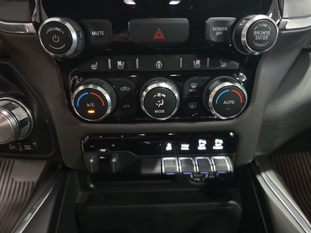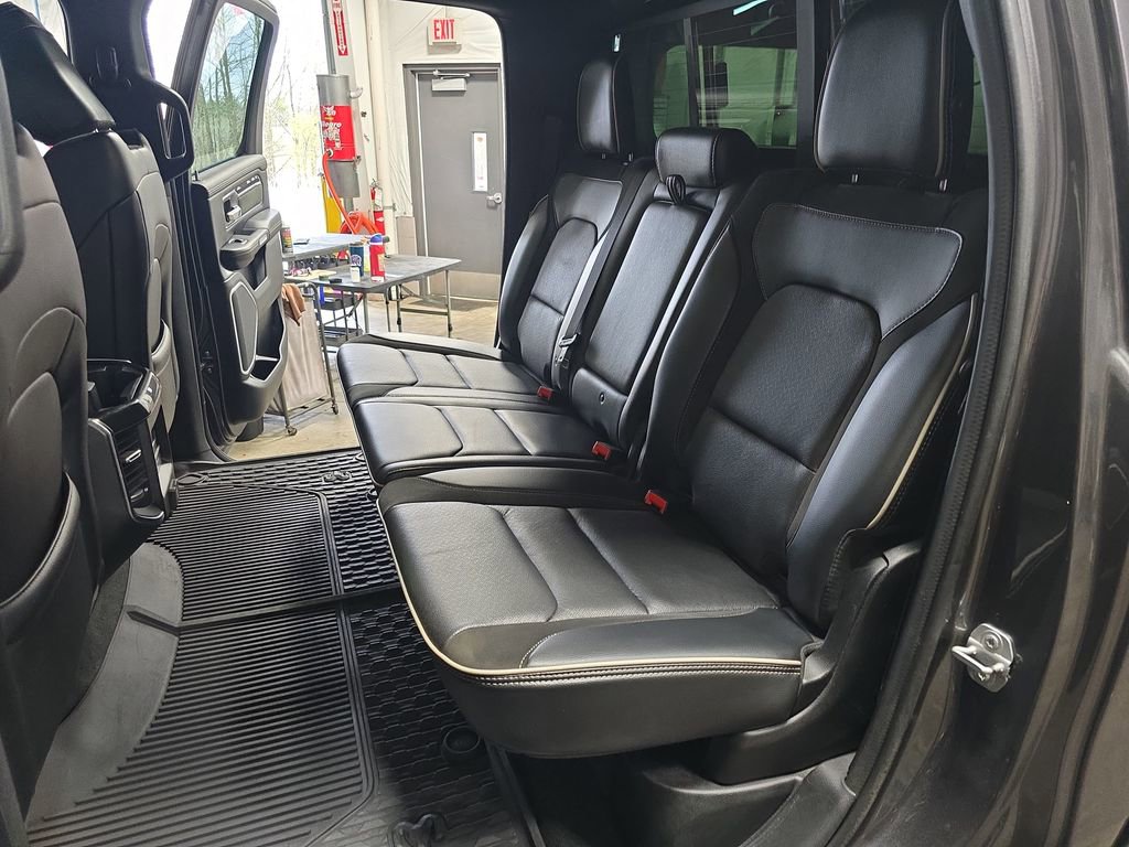 1500 Laramie, 4D Crew Cab, 3.6L V6 24V VVT, 4WD, Black Leather, 2nd Row In Floor Storage Bins, Accent Color Premium Power Mirrors, Audio memory, Auto High Beam Headlamp Control, Auto-Dimming Exterior Driver Mirror, Automatic temperature control, Black Exterior Truck Badging, Black Headlamp Bezels, Black Interior Accents, Black Painted Exterior Mirrors Caps, Blind Spot & Cross Path Detection, Body Color Door Handles, Body Color Front Bumper, Body Color Rear Bumper w/Step Pads, Bucket Seats, Convex Wide-Angle Mirror Insert, Driver Seat Memory, Dual Exhaust w/Black Tips, Exterior Mirrors Courtesy Lamps, Exterior Mirrors w/Heating Element, Exterior Mirrors w/Memory, Exterior Mirrors w/Supplemental Signals, Foam Bottle Insert (Door Trim Panel), Fully automatic headlights, GPS Navigation, Grille Surround 3 Black Texture 2 Black, harman/kardon 19 Speaker Premium Sound, Heated front seats, Laramie Level II Equipment Group, Leather Trimmed Bucket Seats, Memory seat, Mopar Black Tubular Side Steps, Night Edition, ParkSense Front/Rear Park Assist w/Stop, ParkView Rear Back-Up Camera, Pedal memory, Power-Folding Mirrors, Quick Order Package 23H Laramie, Radio: Uconnect 5 Nav w/8.4 Display, Rain Sensitive Windshield Wipers, Remote Tailgate Release, Sport Performance Hood, Twill Film Appliques, Ventilated Front Seats, Wireless Charging Pad.